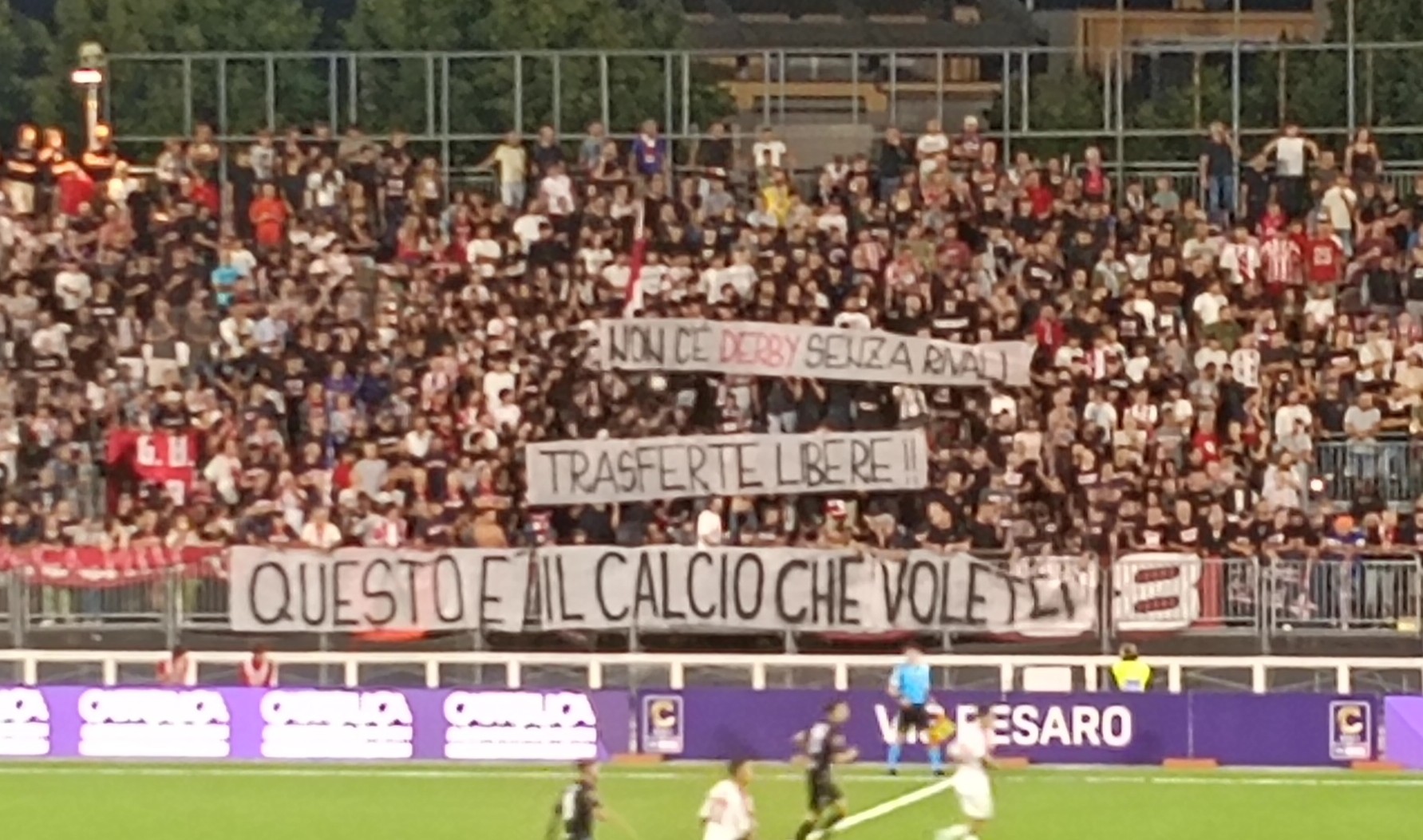 Dopo 10 minuti di silenzio da parte della Curva Prato per il divieto di trasferta ai riminesi, tornano i cori al "Benelli"